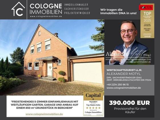 Mehr zum Angebot FREISTEHENDES 5-ZIMMER EINFAMILIENHAUS MIT WEITLÄUFIGEM GARTEN IN QUADRATH-ICHENDORF: