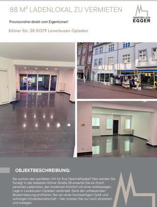 Mehr zum Angebot 88 Mª LADENLOKAL ZU VERMIETEN Leverkusen Opladen Provisionsfrei: